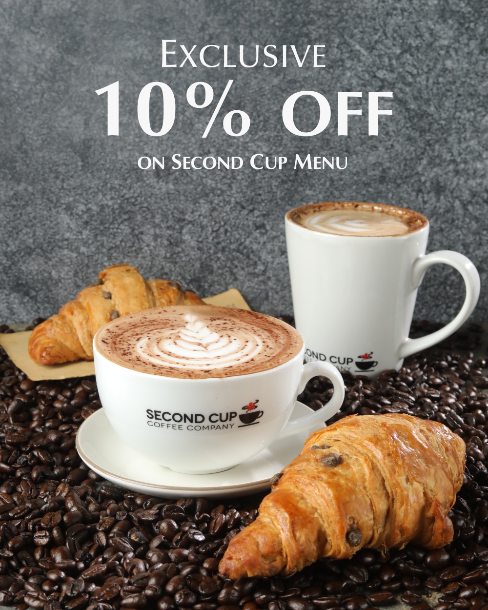 Enjoy 10% discount on Second Cup menu with your friends and family.